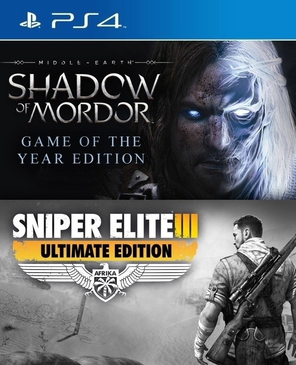 2 JUEGOS EN 1 Middle earth Shadow of Mordor Game of the Year Edition MAS Sniper Elite 3 ULTIMATE EDITION PS4