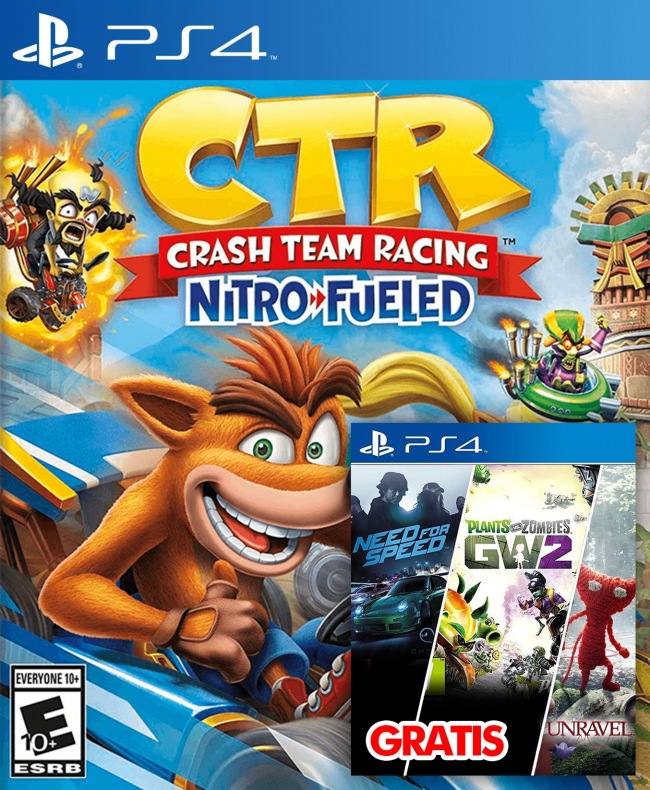 Crash Team Racing NitroFueled mas Regalo 3 JUEGOS EN 1 Need for Speed mas Plants vs Zombies Garden Warfare 2 mas Unravel PS4